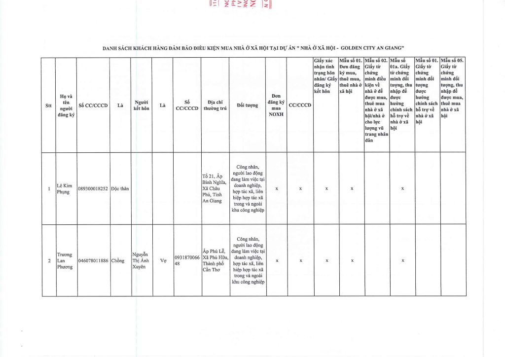 Danh sách khách hàng đủ điều kiện mua NOXH tại dự án “Nhà ở xã hội – KĐT Golden City An Giang” Tòa T3-T4 đợt 13.2